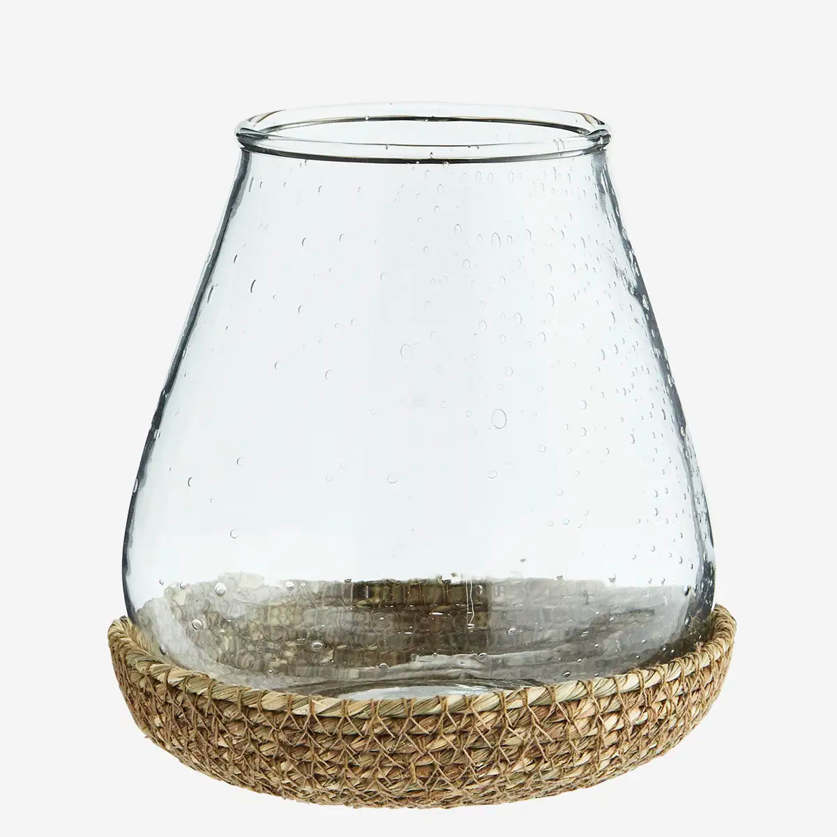 Illuminez votre intérieur d'une touche naturelle avec ce photophore unique. Son design épuré allie la transparence du verre soufflé à la texture authentique de la jute naturelle, créant une ambiance douce et chaleureuse.